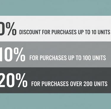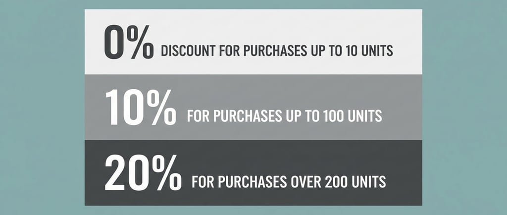 El segundo concepto de descuento se asocia al volumen mensual de compra, con tres rangos: más de $10.000, entre $5.000 y $10.000, y menos de $5.000.